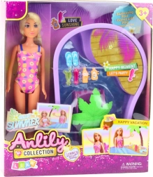Découvrez la magie des jeux d’été avec la poupée ANLILY en maillot de bain, une piscine avec toboggan et un palmier. Un riche ensemble d’accessoires (sandales, boissons, glace) stimule le jeu créatif, développe l’imagination et offre des heures de divertissement.