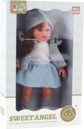 - Poupée SWEET ANGEL 36,5 cm ; tenue stylée (robe, petit cardigan, bonnet, chaussons)