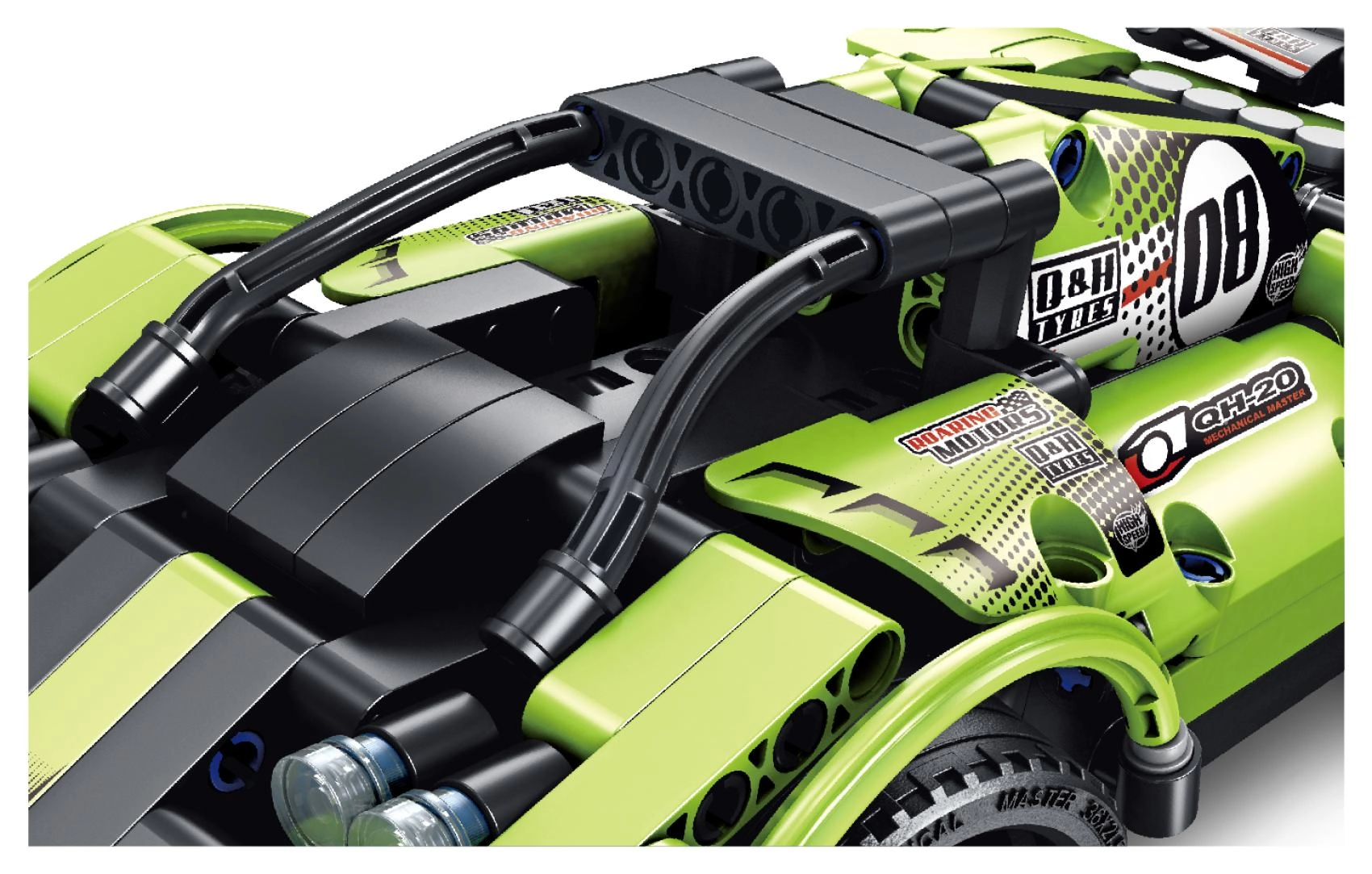 - 2-en-1 – construis deux variantes de voiture de course à partir d’un seul set
