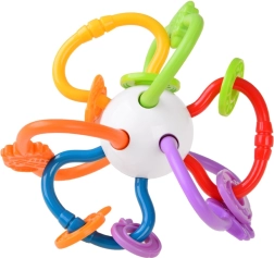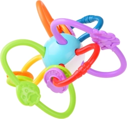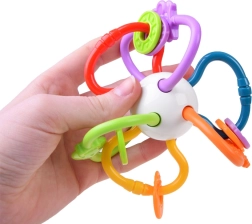Ce jouet de dentition est fabriqué à partir de matériaux de qualité, sûrs pour les bébés. Grâce aux parties torsadées et flexibles, il est facile à saisir, masse les gencives et hochet doucement, ce qui développe l’ouïe. Les éléments colorés qui coulissent en douceur invitent à l’exploration et entraînent la motricité fine.