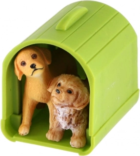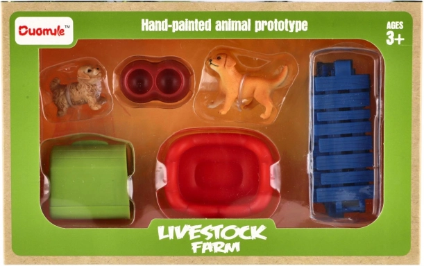 Chiens en plastique avec enclos et accessoires, lot de 2 pièces