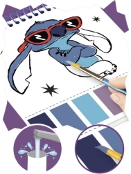 Un set créatif amusant pour petits artistes : bloc spiralé avec vingt coloriages de l’univers de Lilo et Stitch, accompagné de 6 peintures et d’un pinceau pour peindre immédiatement à la maison ou en déplacement.