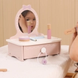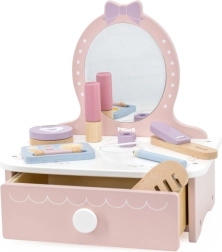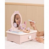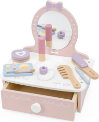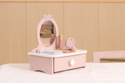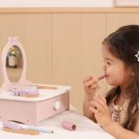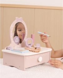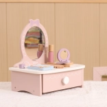 Une coiffeuse pour enfants en bois au style élégant qui offre des heures de jeu créatif. Comprend une petite table et des accessoires en bois sûrs comme un peigne, un fer à friser et du maquillage. Idéale pour les enfants dès 3 ans. Conception robuste en bois, accessoires riches et dimensions compactes pour une installation facile dans la chambre d’enfant.