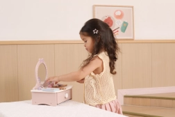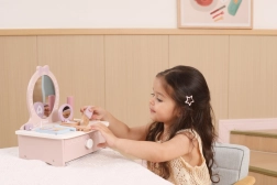 La coiffeuse est emballée dans une boîte rigide, ce qui en fait également un excellent cadeau. Un choix idéal pour les petites coquettes dès 3 ans, qui aiment imiter les adultes et développer leur imagination.