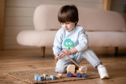 Le jouet est fabriqué en bois d’érable et de hêtre de la plus haute qualité et recouvert de peintures à l’eau inodores. Il répond aux strictes normes de sécurité EN 71 et porte la certification allemande TÜV. Un choix parfait pour développer les compétences sensori-motrices, la pensée logique, la créativité et l’imagination.