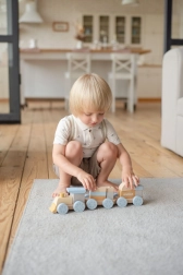 Le train arc‑en‑ciel pastel CUBIKA est un puzzle en bois de qualité qui allie jeu et apprentissage. Les enfants empilent des blocs colorés sur les chevilles de la locomotive et des deux wagons, et entraînent la coordination main‑œil, la reconnaissance des couleurs et des formes. Une fois assemblé, le train mesure environ 38 cm et est prêt pour un voyage imaginaire.
