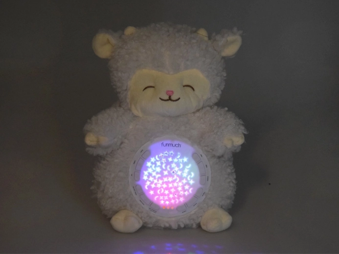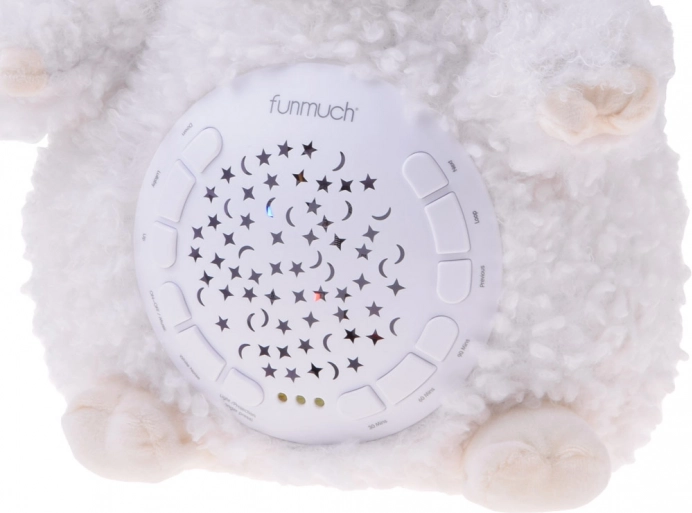 Ce mouton tout doux et câlin crée une atmosphère magique dans la chambre d’enfant pour un endormissement paisible. La projection lumineuse colorée d’étoiles et de croissants de lune sur les murs et le plafond, associée à de douces mélodies, au bruit de la mer ou de la pluie, aide l’enfant à se calmer et à se sentir en sécurité.