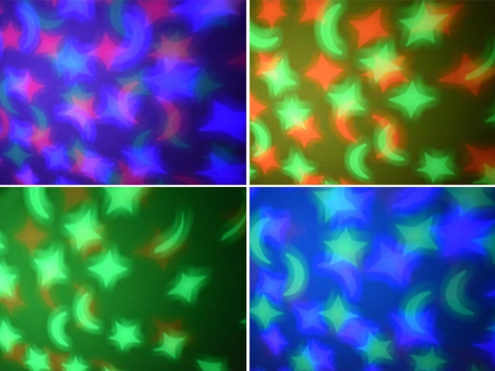 - Projection d’étoiles et de croissants de lune (rouge, vert, bleu)