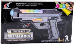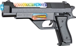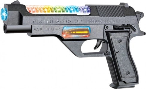 Un pistolet jouet à piles amusant qui offre aux enfants des heures de divertissement d’action. En appuyant sur la détente, des LED colorées s’allument et des sons de tir réalistes retentissent. Sa construction solide en plastique de qualité, ses éléments mobiles et son format compact de 24 cm en font l’accessoire parfait pour des jeux créatifs et stimuler l’imagination.