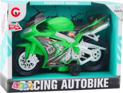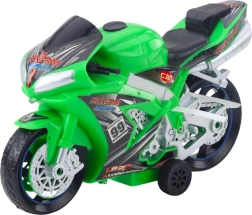 Cette moto de course verte ravira tous les petits fans de vitesse et de compétitions motorisées. Fabriquée en plastique résistant, elle possède une base stable et des roues larges pour une conduite sûre sur différentes surfaces. En appuyant sur le bouton, elle déclenche des effets lumineux et des sons de moteur réalistes qui intensifient l’expérience de jeu.