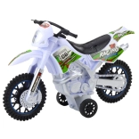 Ce jouet de motocross est un choix idéal pour les enfants qui aiment les machines de course et tout-terrain. Grâce à son design réaliste inspiré des motos off-road et à sa combinaison de couleurs blanc-vert attrayante, les enfants imagineront facilement leurs propres aventures de course.