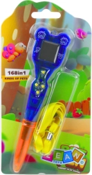Le stylo électronique avec console de jeu intégrée combine un outil d’écriture utile et un divertissement de poche. Les enfants peuvent choisir parmi 168 mini‑jeux différents, assurant le fun partout — à la maison, à l’école et en déplacement. Le stylo écrit à l’encre bleue et, grâce au cordon fourni, il peut être porté confortablement autour du cou.