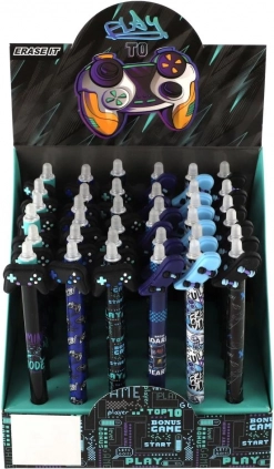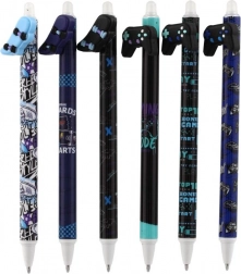 Découvre le set de stylos bille effaçables en 6 couleurs, qui ravira tous les fans de jeux vidéo. Chaque stylo possède un topper original en forme de manette, de skateboard, de nœud papillon ou d’ailes, et est décoré d’imprimés modernes dans une palette noire et bleue. Grâce à l’encre effaçable, corrige facilement les petites erreurs sans laisser de traces.