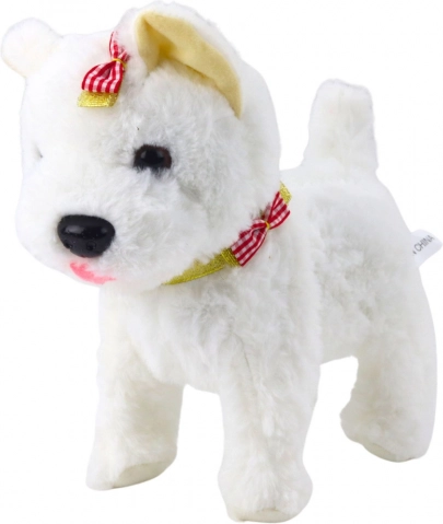 Chiot en peluche interactif avec laisse et nœuds – blanc