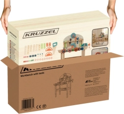 L’établi d’atelier en bois pour enfants KRUZZEL offre une station de bricolage complète pour les petits maîtres du tournevis. La table, avec étau intégré, règle graduée et trous pré-percés, permet un “vrai” travail en toute sécurité. Les matériaux naturels et non toxiques ainsi que les bords arrondis garantissent un jeu sûr, tandis que la structure stable résiste aux aventures du quotidien.