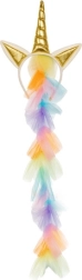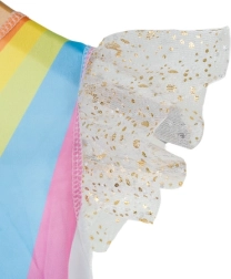 Un set féerique pour les petites amatrices de fantaisie, contenant tout le nécessaire pour une transformation immédiate – jupe scintillante avec étoiles, ailes dorées à élastiques et serre-tête avec oreilles, crinière et corne. Grâce à l’enfilage simple par la tête et aux éléments élastiques, le costume est prêt pour s’amuser en un instant sans fermetures compliquées.