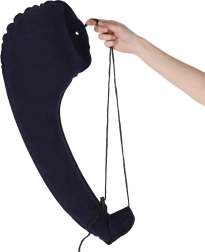 Le coussin latéral gonflable est idéal pour les longs trajets en voiture, en bus ou en train. Il est conçu pour dormir en position assise : appuyez la tête sur la partie la plus large, et fixez l’autre extrémité au dossier à l’aide d’attaches à clip. Il stabilise la posture et aide à réduire les tensions dans la région cervicale.