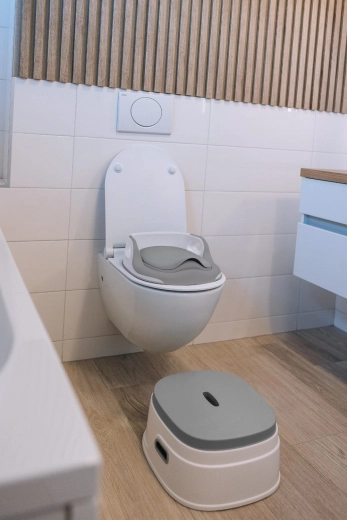 Il comprend un bol intérieur amovible pour un nettoyage facile et rapide, un réducteur de toilettes amovible pour une utilisation sur des WC standard et un marchepied pratique avec poignées latérales, qui aide l’enfant à atteindre le lavabo ou des surfaces plus élevées.