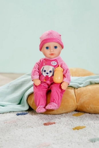 Adorable poupée BABY born Anna en tenue rose foncé, idéale pour jouer et câliner. Elle a un corps souple pour un port confortable, des yeux dormeurs et le coffret comprend un biberon, une grenouillère et un bonnet. Un excellent choix pour une première poupée pour les enfants à partir de 1 an.