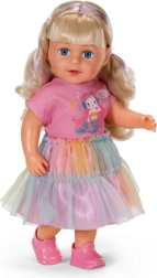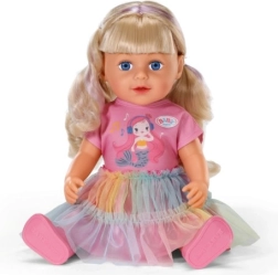 Découvrez la poupée BABY born Carla 43 cm avec de longs cheveux en nylon de qualité, faciles à coiffer. Elle est accompagnée de 7 accessoires de coiffure, possède des articulations mobiles, peut tenir debout toute seule et, grâce à son corps rigide, elle peut aller dans le bain. Son style est complété par un adorable tee-shirt, une jupe en tulle arc-en-ciel et des chaussures roses – parfait pour le jeu créatif et le stylisme capillaire.