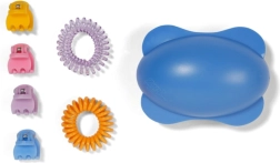 • 7 accessoires pour les cheveux – brosse, 2 élastiques, 4 barrettes.