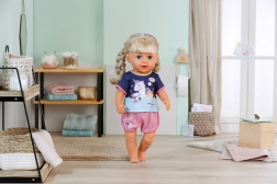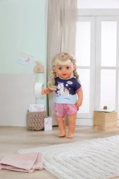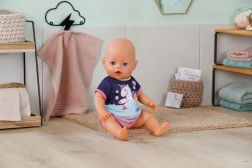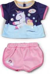 Ce pyjama confortable avec t-shirt doux et short rose est conçu pour les poupées BABY born 43 cm. Grâce à la taille élastique et à l’astucieuse coupe Easy Fit, les enfants peuvent l’enfiler tout seuls, pour plus de jeu autonome et des scénarios de rôle avant le coucher.