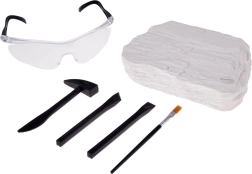 Le jeu soutient de manière ludique l’apprentissage de la préhistoire, la concentration et la précision. Pour faciliter le travail, le bloc de plâtre peut être trempé afin que la fouille se fasse en douceur et en sécurité. Idéal comme cadeau original pour les petits explorateurs et les amoureux des dinosaures et de la préhistoire.