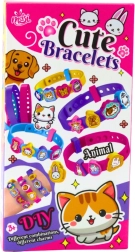 Kit créatif pour enfants permettant de fabriquer ses propres bracelets colorés aux motifs d’animaux. Contient 4 bracelets en caoutchouc ajustables, de nombreuses breloques et des autocollants pour des combinaisons infinies. Un divertissement idéal qui développe la motricité fine, la créativité et l’imagination.