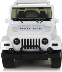 voiture de police tout-terrain blanche avec effets et moteur à rétrofriction