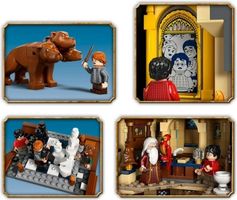 Le set inclut 12 minifigurines ainsi que les figurines de Touffu, Hedwige et Fumseck. On retrouve également le Miroir du Riséd, le Choixpeau et 6 portraits de Poudlard à collectionner. Ce set fait partie de la gamme modulaire LEGO HARRY POTTER – en les combinant, vous construirez le plus grand château de Poudlard en LEGO.