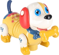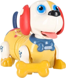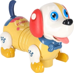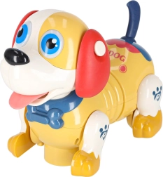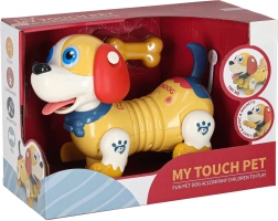 Caressez le chien sur la tête ou le corps et déclenchez des réactions amusantes: phrases en anglais, mélodies et yeux lumineux qui soutiennent l’apprentissage et le jeu.