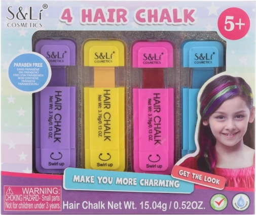 Essayez une coloration facile et amusante avec un set de craies pour cheveux en 4 teintes éclatantes. Idéal pour les fêtes, les séances photo et les expériences du quotidien. Les couleurs s’appliquent facilement et peuvent être rapidement rincées à l’eau et au shampooing. Sûr pour les enfants dès 5 ans, et emballé dans une boîte pratique.