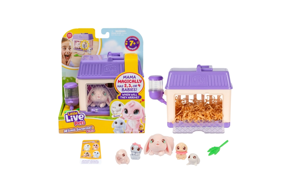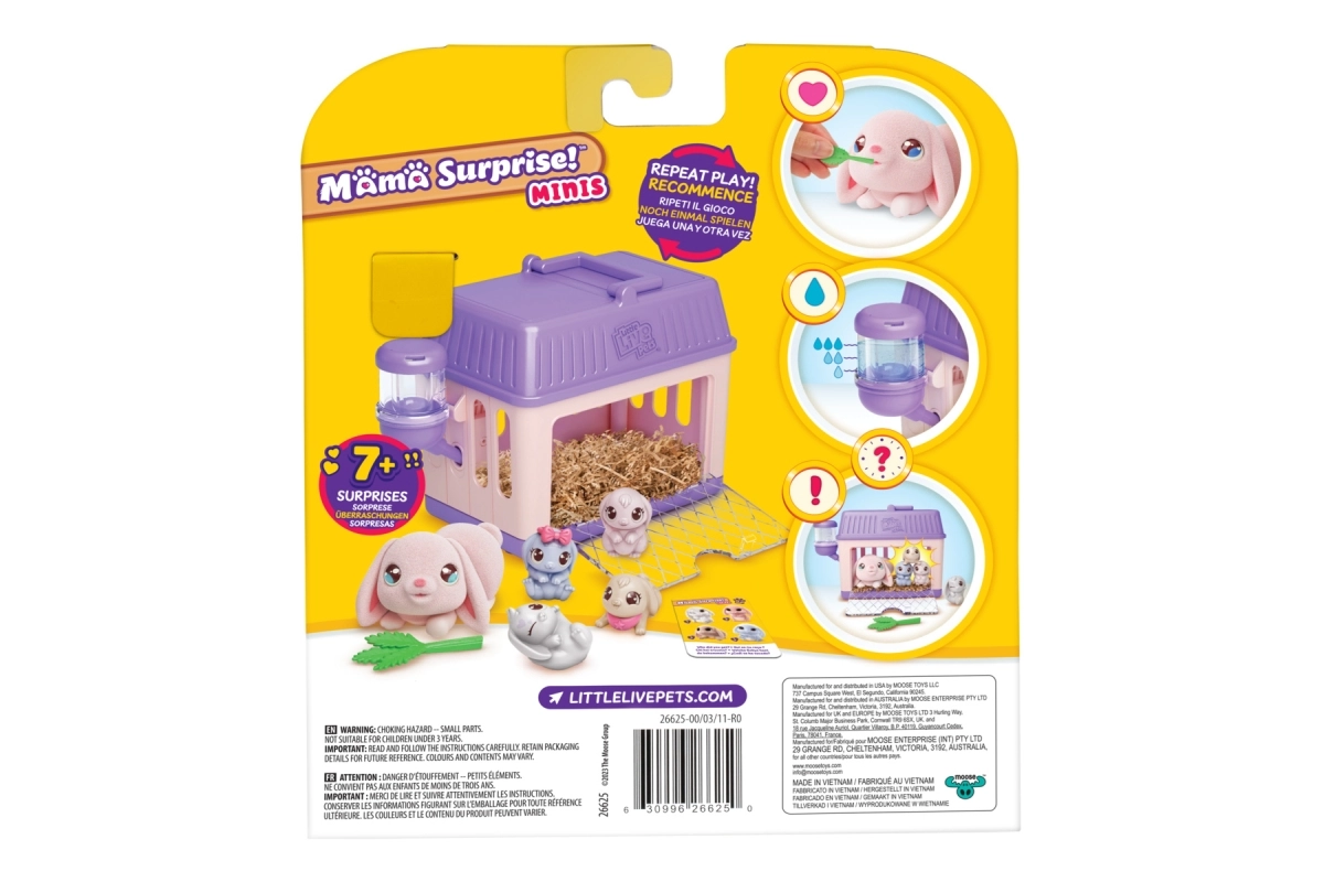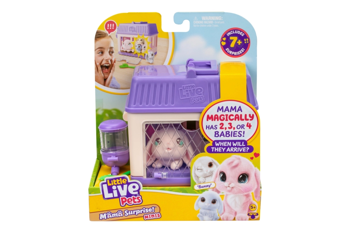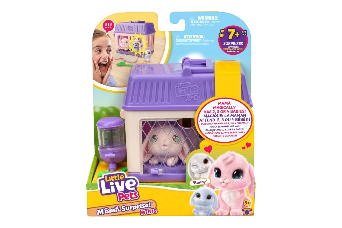 Découvrez l’univers des lapinous avec Little Live Pets – Mama Surprise. Occupez-vous de la maman, caressez-la, donnez-lui à manger et placez-la dans la cage. Après avoir ajouté de l’eau à l’abreuvoir, attendez environ 60 minutes pour une surprise sous la forme de petits lapereaux. Le jeu est rejouable et vous pouvez faire apparaître les bébés immédiatement après avoir replacé la maman dans la cage.