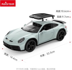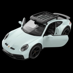 Ce modèle sous licence PORSCHE 911 Dakar dans une élégante couleur vert menthe est fabriqué en plastique ABS de qualité et avec des composants mécaniques et électroniques haut de gamme. Il reproduit fidèlement le modèle réel et se distingue par une conduite rapide et précise ainsi qu’un intérieur richement détaillé.