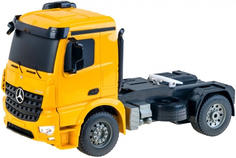 Ce camion RC détaillé sous licence MERCEDES-BENZ est idéal pour les jeunes passionnés de technologie. Le tracteur et la semi-remorque sont équipés de roues en caoutchouc, les feux avant et arrière s’allument et, lors de la marche arrière, les feux de recul et le signal sonore s’activent. Le bruit réaliste du moteur fonctionne pendant toute la conduite et renforce l’immersion.