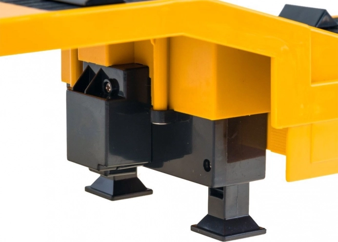 La télécommande multifonction 2,4 GHz assure un pilotage précis sans interférences et permet de contrôler le tracteur ainsi que la semi-remorque. Vous pouvez facilement avancer/reculer, tourner à gauche/droite, lever ou abaisser les béquilles, manœuvrer la rampe d’accès et atteler/désatteler la semi-remorque.