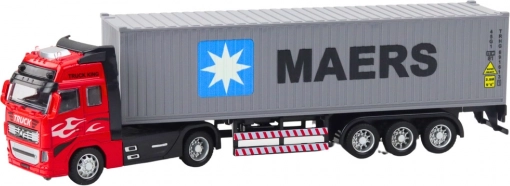 Camion porte-conteneur réaliste avec moteur à rétrofriction, portes ouvrantes et conteneur amovible. Métal + plastique de qualité, roues en caoutchouc. Excellent cadeau.