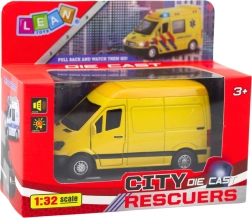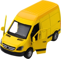 Camionnette jaune réaliste à l’échelle 1:32, associant pièces métalliques et plastique de qualité pour une meilleure durabilité et un look attrayant. Elle offre un mécanisme à rétrofriction (pull back), des portes ouvrantes et des effets lumineux et sonores, idéale pour le jeu comme pour la collection.