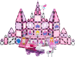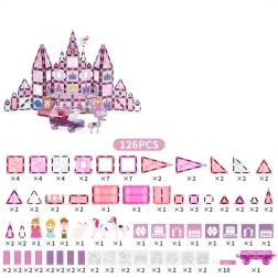 Découvrez un univers créatif avec ce set de 126 pièces, qui combine un assemblage magnétique pour des constructions faciles et stables avec des fenêtres vitrail à colorier. Grâce aux feutres inclus, les enfants peuvent créer leurs propres motifs colorés et développer leur imagination, leur motricité fine ainsi que leur pensée logique. Les briques roses semi-transparentes sont très attrayantes et transforment chaque construction en véritable joyau.