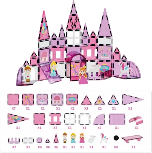 Ce set magnétique rose est un excellent choix pour les enfants qui aiment créer et imaginer. Les pièces semi-transparentes aux motifs de princesses brillent magnifiquement et s’assemblent aisément grâce aux aimants intégrés. Construisez des châteaux, des palais, des maisonnettes et des structures en volume agréables à regarder et à manipuler.