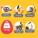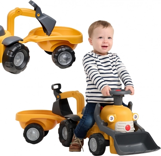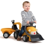 Découvrez le premier porteur compact avec de vraies fonctions de pelleteuse, qui combine mouvement et jeu de rôle. Les enfants s’amuseront à ramasser et déverser des petits objets grâce à la benne avant, tandis que la benne arrière sera parfaite pour charger la remorque amovible. Le volant pivotant avec klaxon, la clé cliquetante et la cache sous le siège garantissent des heures de jeu créatif.