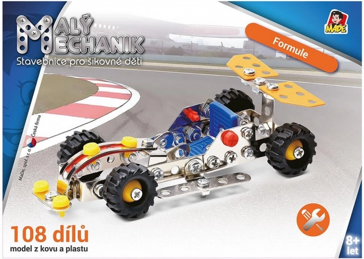 Le kit de construction Made Petit mécanicien formule ravira tous les petits ingénieurs qui aiment la technique et les voitures rapides. À partir de pièces métalliques résistantes, vous construirez un modèle attrayant de monoplace de course tout en entraînant en douceur votre habileté, patience et imagination spatiale.