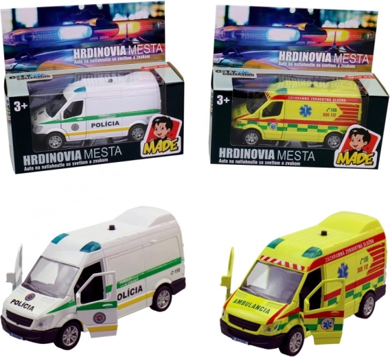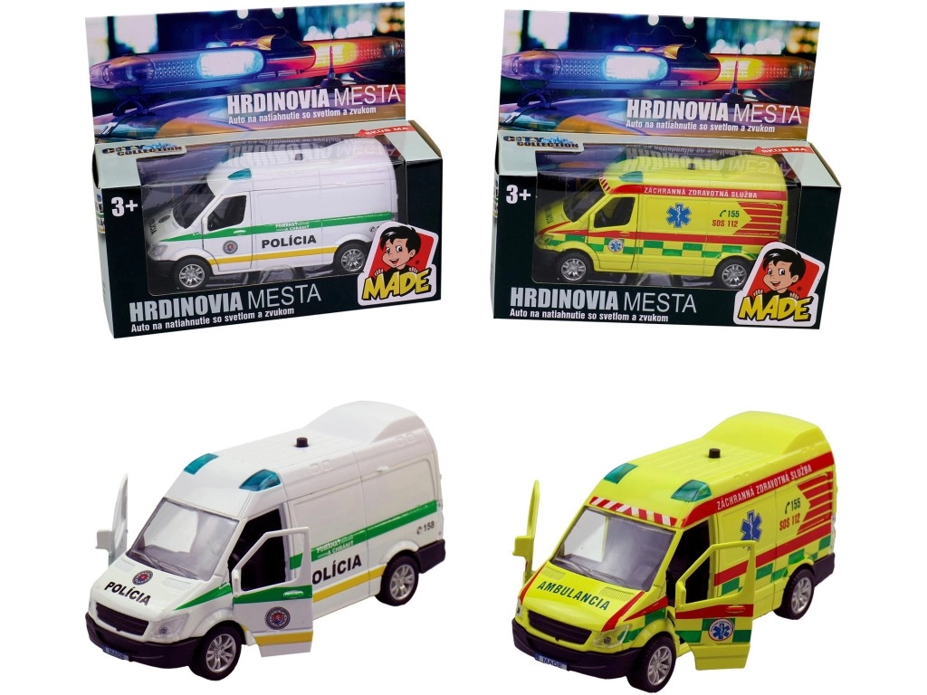 Apportez du réalisme aux missions des enfants avec des modèles détaillés de véhicules de secours au design inspiré des routes slovaques. Vous avez le choix entre 2 modèles – ambulance ou police. Le mécanisme pull-back assure une conduite vive, tandis que les gyros lumineux et le son renforcent l’atmosphère d’une intervention.