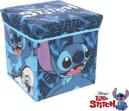 Boîte de rangement élégante avec motif sous licence STITCH combinant rangement malin et assise confortable en un seul produit. La structure pliable permet un montage et un pliage rapides à plat pour gagner de la place, tandis que le couvercle solide garantit une assise sûre pour les enfants comme pour les adultes. La forme cubique standard 30 × 30 × 30 cm s’adapte parfaitement à la plupart des organisateurs en bois.