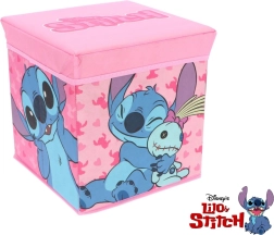 Boîte de rangement pliante pratique avec motif sous licence STITCH, faisant également office de tabouret avec couvercle solide. Elle offre une capacité de charge du couvercle de 80 kg, un volume de 27 l et des dimensions compactes de 30 × 30 × 30 cm. Idéale pour la chambre d’enfant, la salle de jeux ou la salle de bain, et après usage, vous pouvez facilement la replier à plat.