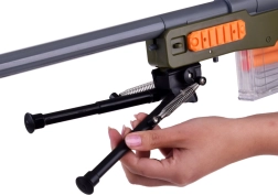 - Fusil, 20 fléchettes en mousse sûres, 6 « douilles », chargeur, lunette (optique), bipied pliable, notice illustrée