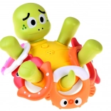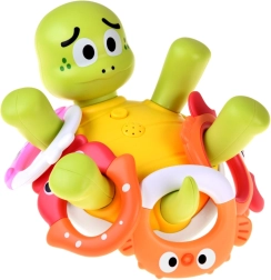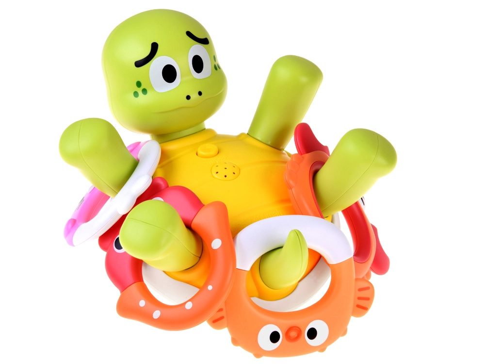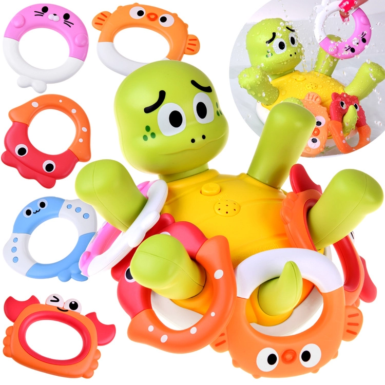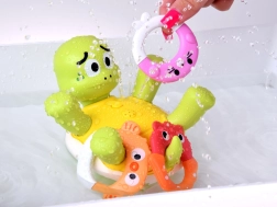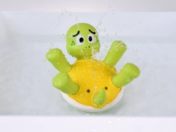 Une fois posée sur l’eau, cette mignonne petite tortue commence à projeter de doux jets qui émerveillent les enfants et favorisent leur aisance avec l’eau. Des disques colorés interchangeables avec différents motifs permettent de varier l’apparence du jouet et de maintenir l’attention des enfants pendant le bain.