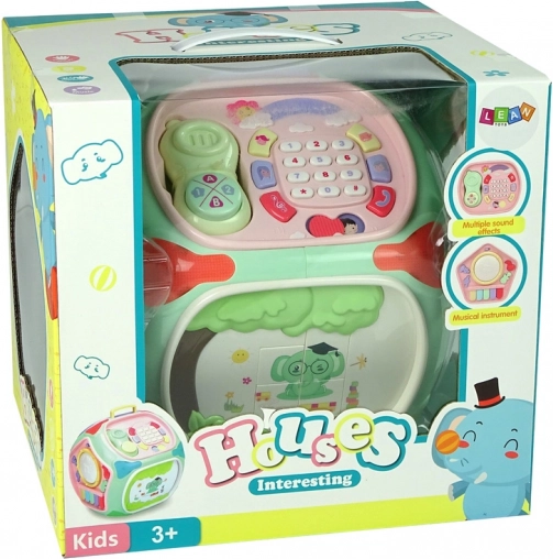 Cube éducative interactive avec trieur, téléphone et petit piano