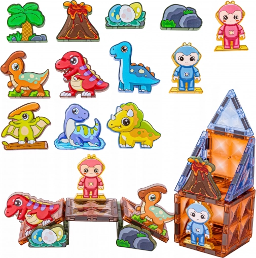 Créez ensemble un univers préhistorique unique. Les pièces magnétiques s’assemblent facilement, tiennent fermement et illuminent dans le noir, apportant une nouvelle dimension à la construction. Les enfants bâtissent des enclos, des volcans et des refuges pour dinosaures, tout en développant naturellement leur représentation spatiale et leur raisonnement logique.