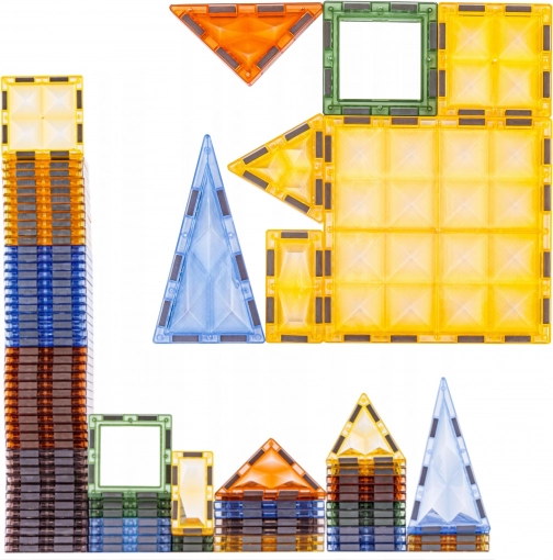 - 124 pièces incluant diverses formes (carrés, triangles, fenêtres, toits)